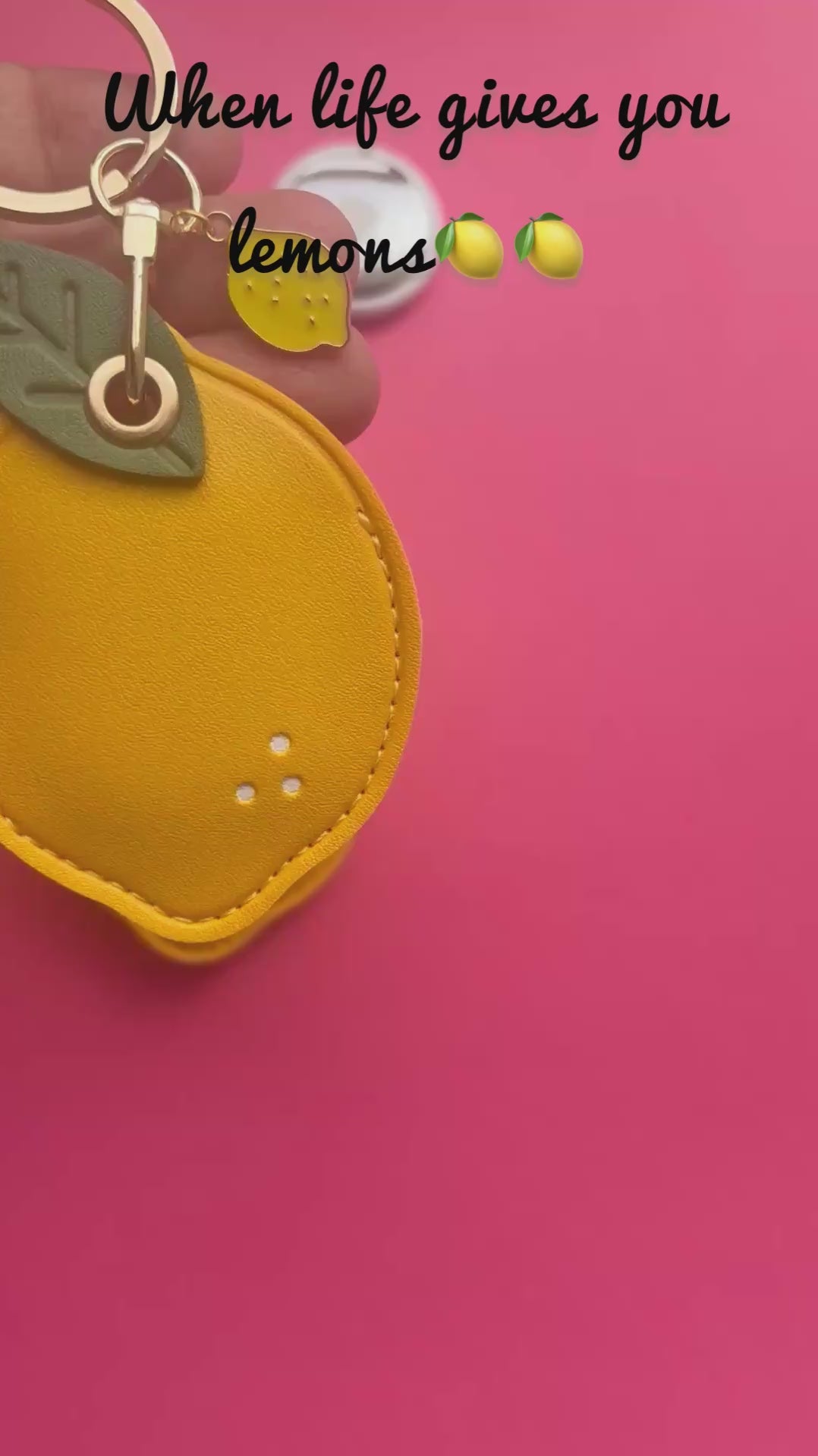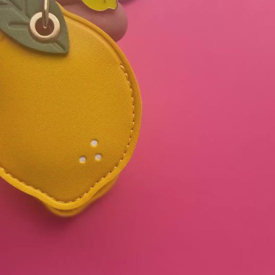 Brighten your everyday gear with this lemon-themed vegan leather AirTag holder. It offers both protection and cheerful style.