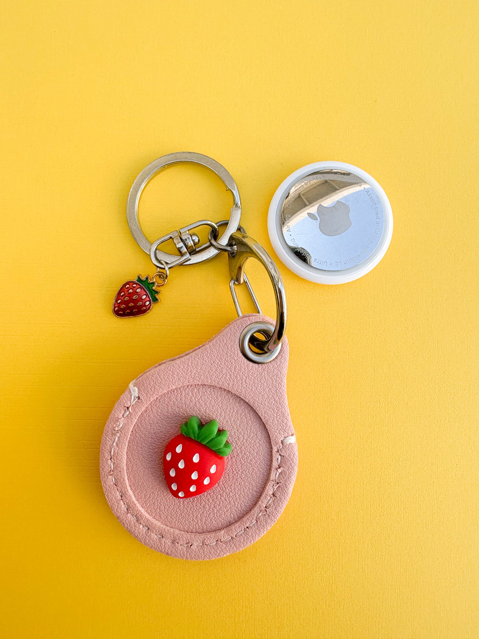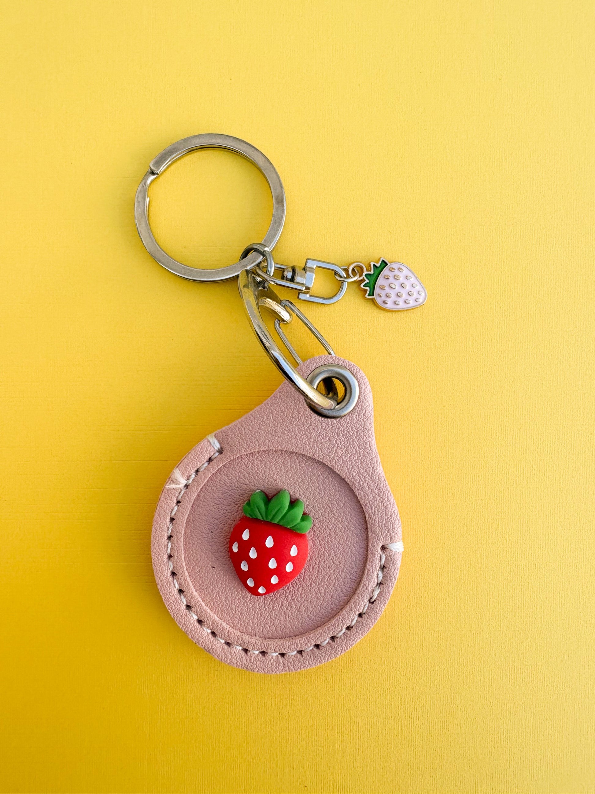 Strawberry AirTag Holder | Vegan Leather AirTag Case Keychain